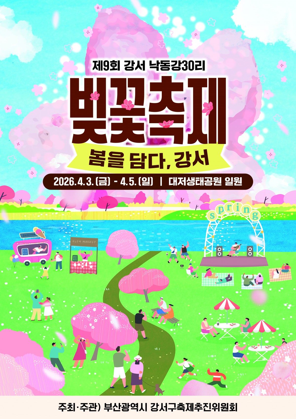 ■ 행사 내용 : 올해 9회를 맞이한 강서 낙동강 벚꽃축제! '봄을 담다, 강서'를 주제로 다채로운 공연과 체험 프로그램을 마련해 방문객들에게 특별한 봄날의 추억을 선사합니다.