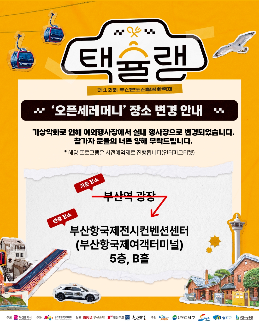 목록 ⭐오픈세레머니 장소 변경 안내⭐ 페이지 정보 작성자 최고관리자 조회 175회 작성일 2025.05.16 본문 이전글이 없습니다. 목록 다음글 ✨제10회 부산원도심활성화축제 택슐랭 야경포차✨ 25.05.16